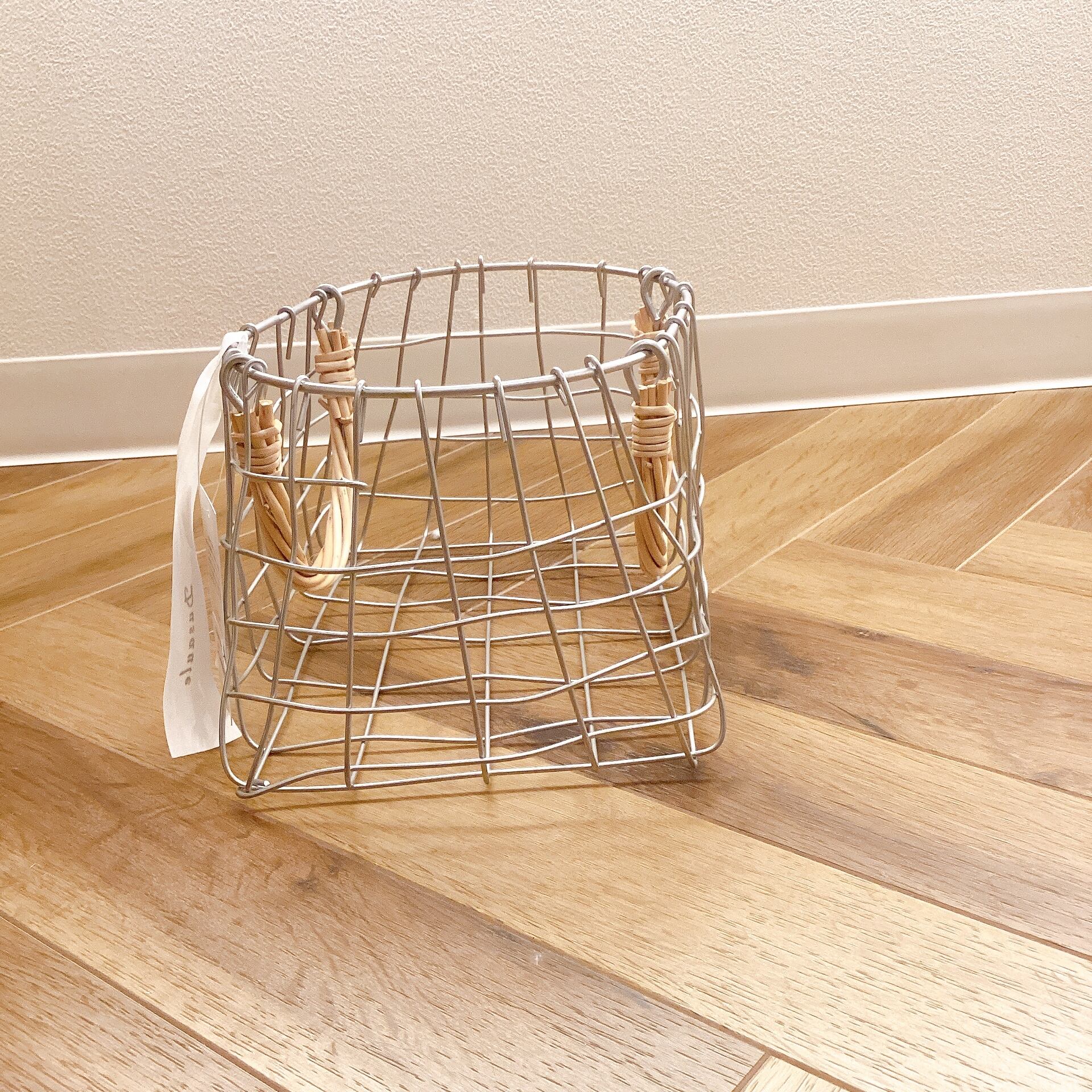 ワイヤーを使ってハンドメイドで編まれたバッグ型バスケット。Dusaule(デュソール)シリーズは落ち着いたシルバー塗装で仕上げ、アクセントに柳を使ったワイヤーバスケットです。統一感のないものでもワイヤーバスケットに入れることでまとまりが生まれ、お洒落なカフェのような雰囲気に。丸みのあるコロンとした形が可愛らしいオーバルと、高さのある物も収納しやすいレクトの2タイプ。オーバルは野菜ストッカーや、小物収納に便利なサイズ。レクトは洗面所でドライヤーや洗面用具を収納したりなど、どちらもさまざまな用途で幅広くお使いいただけます。その他のDusaule(デュソール)シリーズで収納を揃えても統一感が出ます。