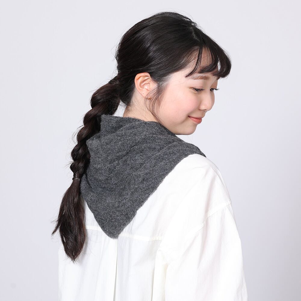 ショールとスカーフ、どちらの要素も兼ね備えた三角シルエットは、山の向きを前後にするだけで様々なコーディネートをお楽しみ頂けます。アルパカ混紡素材のため、寒い日でも暖かさをキープ、滑らかな肌触りが心地よい一枚です。シルエットになぞって施した三角の編み柄と優しく控えめな北欧カラーがマッチしたデザイン。