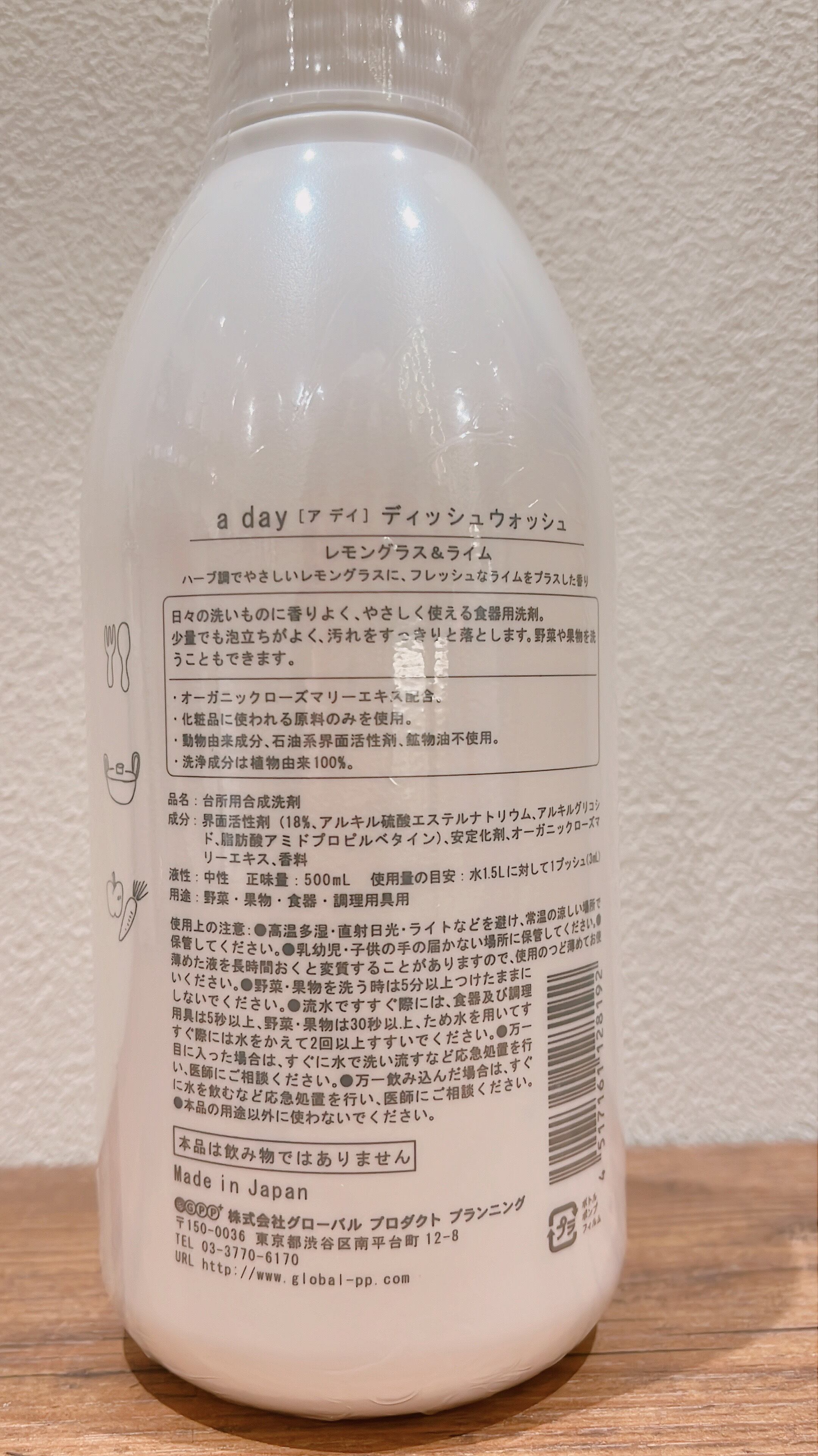 日々の洗いものに、香りよくやさしく使える食器用洗剤。少量でも泡立ちがよく、汚れをすっきりと落とします。野菜や果物を洗うこともできます。