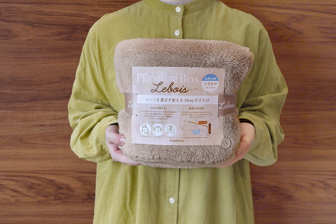 うっとりとろける滑らかな触り心地のルボア生地。ふわふわで高密度に織り込まれた生地は保温性抜群で、身に着けた瞬間からほぐれるようなあたたかさを体験できます。あったか かわいい おしゃれ ひざかけ 北欧 ブランケットボア 節電対策 防寒対策 おうち時間 3Way ギフト プレゼント