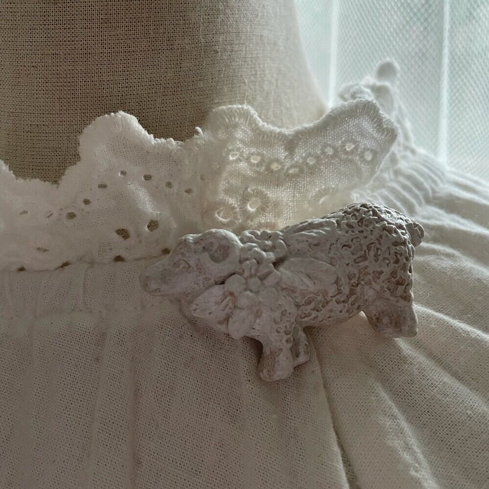 オーブン陶土で作ったアンティーク風なうさぎのブローチです